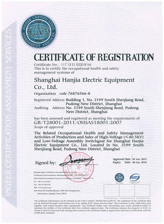 GB/T28001-2011职业健康安全管理体系认证证书