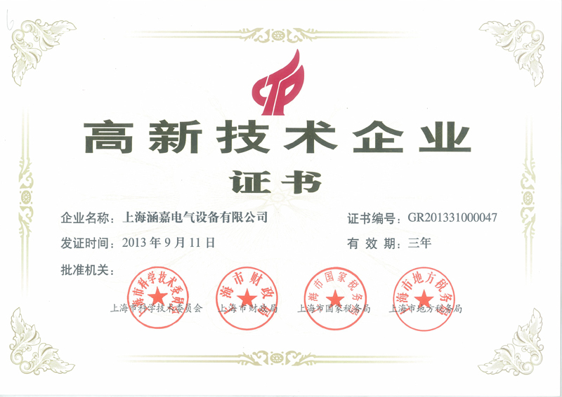 祝贺涵嘉电气荣获“高新技术企业”称号
