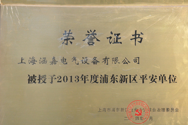 祝贺涵嘉电气被授予“2013年度浦东新区平安单位”