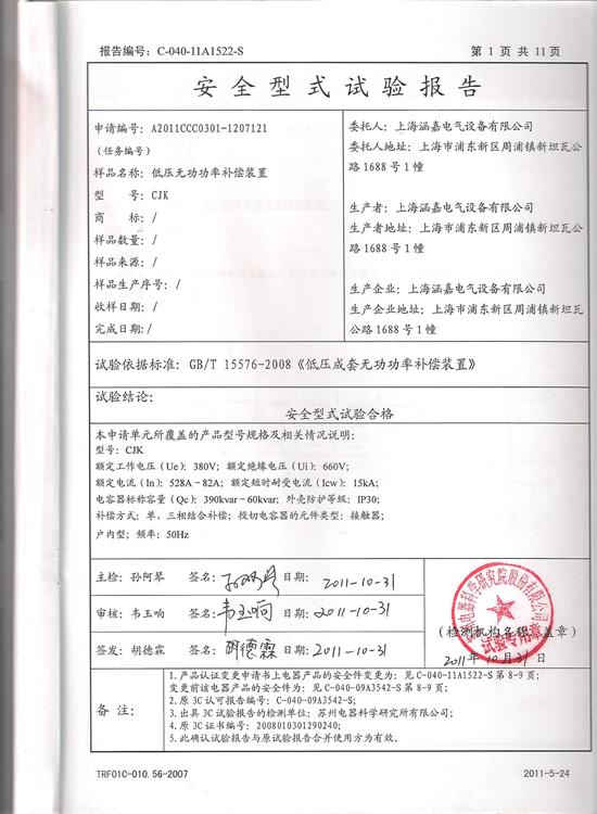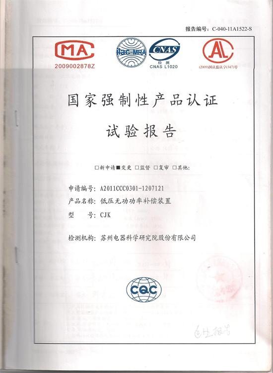 CJK低压无功率补偿装置试验报告