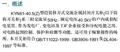 KYN61-40.5(Z)铠装移开式交流金属封闭开关柜